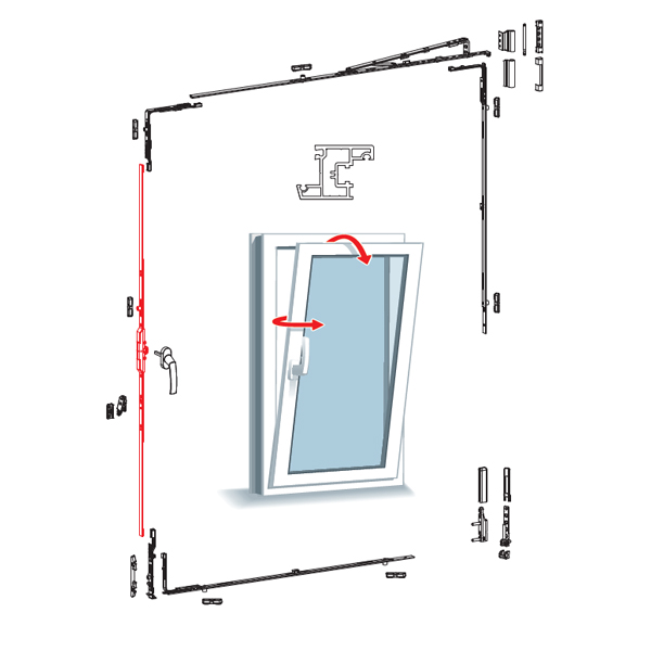 30mm/40mm Middle Handle Additional Locking Espagnolette