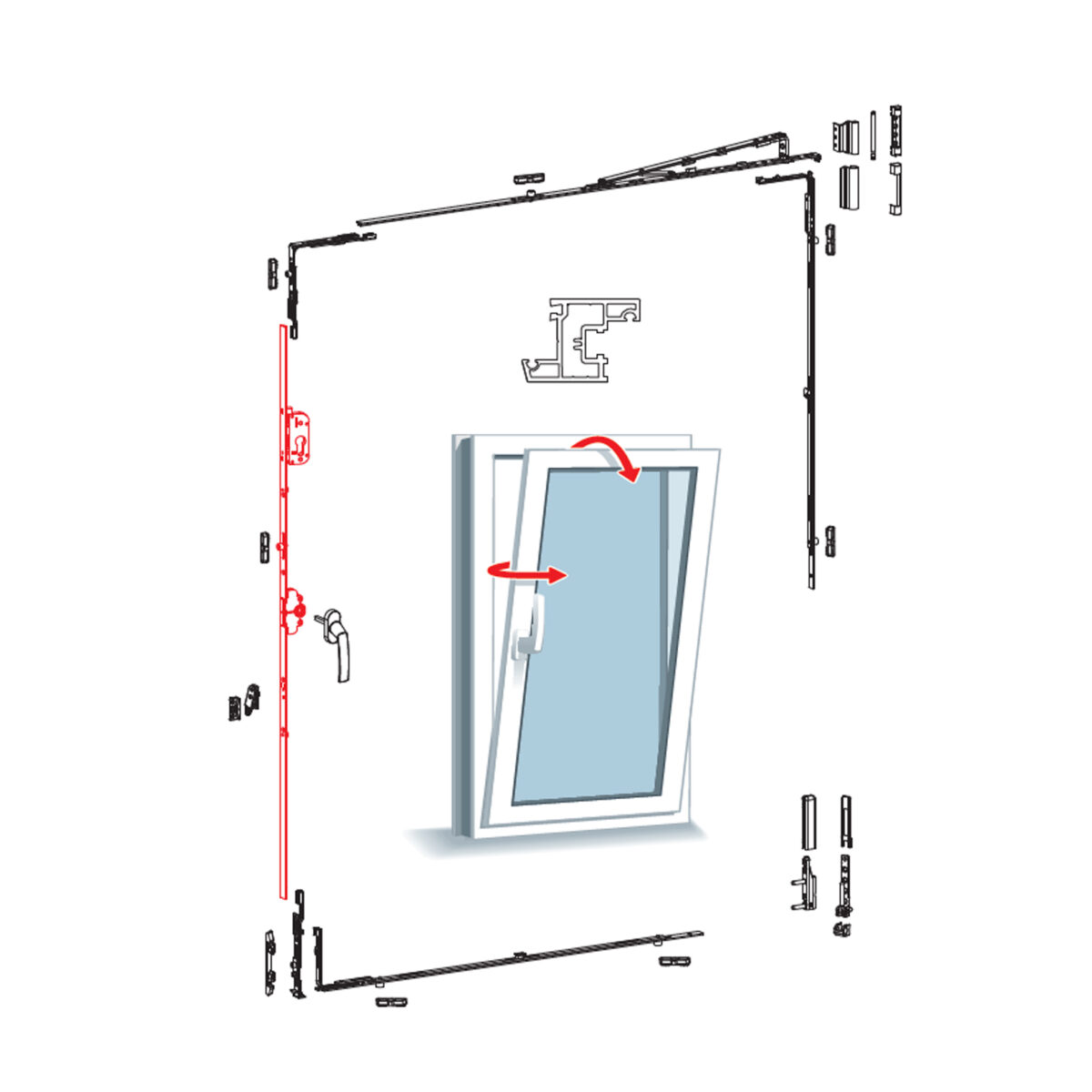 30mm/40mm Middle Handle Additional Locking Espagnolette