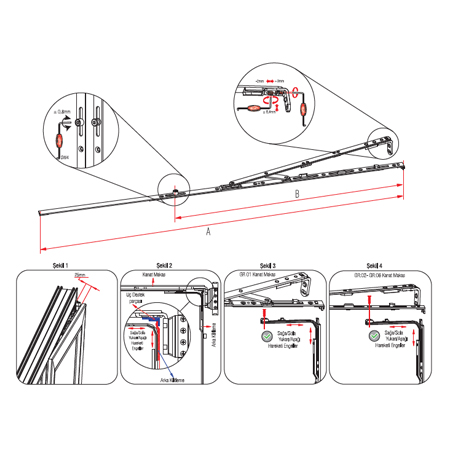 Rear Locking,1 'As shown in Figure 3-4”, the profile can be fixed by screwing it from the end, specifically for the Fornax product, independently of the Wing Scissors, and also limits the movement of the Rear Locking to the Right-Left and Up-A,'.x.