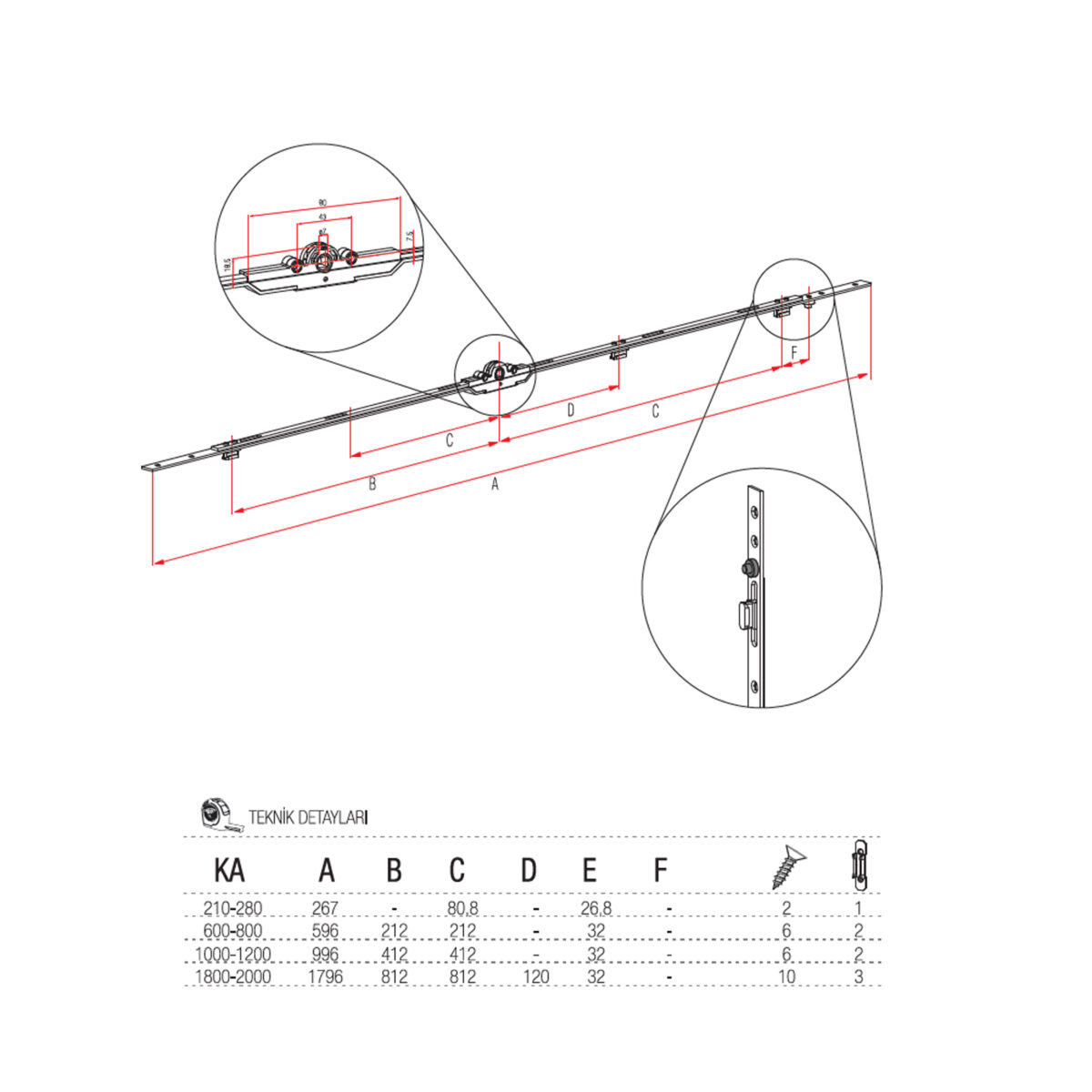 Kullanım Aralığı | A | B | C | D | E | F | Vida | Karşılık |